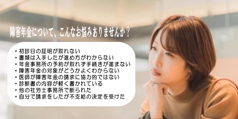 「障害年金って何?」「私も受給できるかな?」といったお悩みや疑問がありましたらぜひ一度ご相談ください。