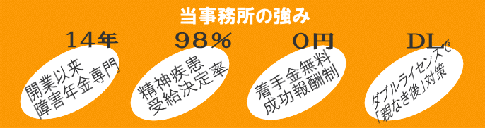 「障害年金って何?」「私も受給できるかな?」といったお悩みや疑問がありましたらぜひ一度ご相談ください。障害年金の請求を専門にサポートする社労士として近畿圏を中心に活動しており、相談者様のお気持ちに寄り添う丁寧な対応を心がけております。障害年金の支給は国が決定するため請求にあたっては複雑な手続きが必要となります。一度不支給になったものを覆すには数倍の労力と時間が必要となります。 病気やケガで辛い思いをされている皆様がスムーズに受給できるよう迅速に対応してまいります。