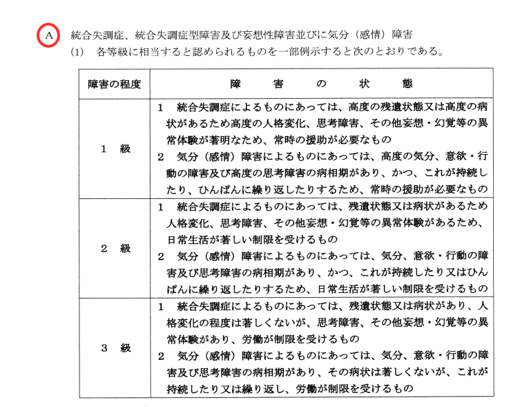 「気分(感情)障害については、現在の症状だけでなく、症状の経過(病相期間、頻度、発病時からの状況、最近1年程度の症状の変動状況など)及びそれによる日常生活活動等の状態や予後の見通しを考慮する。